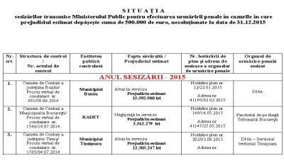 Lista DOSARELOR inaintate de Curtea de Conturi si solutionate in 2010-2015