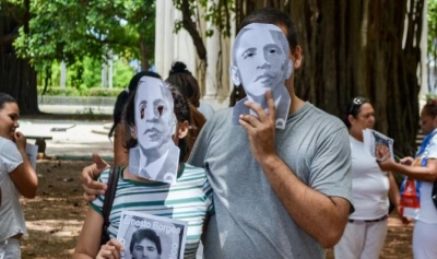 "Din acest motiv purtăm măşti cu poza lui, pentru că este responsabilitatea sa", a subliniat Angel Moya, soţul conducătoarei Doamnelor în Alb, Berta Soler. Preşedintele "Obama trebuie să impună condiţii guvernului cubanez pentru a pune capăt încălcării drepturilor omului", a subliniat aceasta din urmă, exprimându-şi regretul că în timpul vizitei sale John Kerry nu şi-a programat discuţii cu reprezentanţii societăţii civile cubaneze.