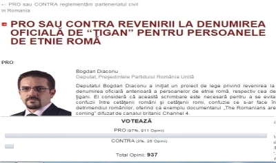 Acum două săptămâni, președintele Partidului România Unită a depus la Parlament proiectul de lege (textul AICI) privind revenirea la denumirea oficială de țigani a persoanelor intitulate de etnie romă. Propunerea a stârnit nemulțumirea ONG-urilor care se ocupă de romi, precum și scrisori publice de contestare din partea Active Watch și a altor organizații similare, dar a atras un suport aproape unanim în mediul online unde deputatul Bogdan Diaconu a lansat întâi proiectul în dezbatere publică. Sondajul lansat de Societatea Academică Română confirmă că acestă lege va face în continuare valuri și că are un suport popular greu de imaginat pe alte teme.