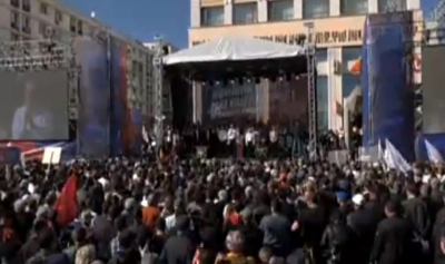 Liviu Dragnea a urmat pe scenă, în uralele celor prezenți, dar și în huiduielile celor câteva sute de protestatari anti-PSD aflați la câteva sute de metri distanță.