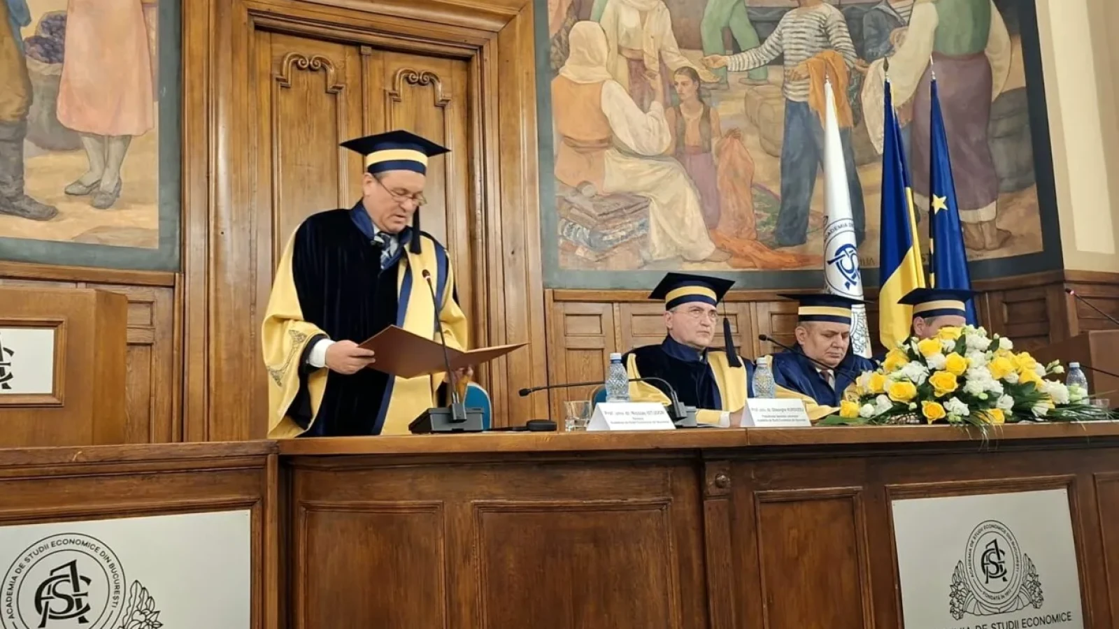 Ceremonia a avut loc în Aula Magna a ASE, în format hibrid, în prezența unui număr semnificativ de membri ai comunității academice, atât fizic, cât și online. Evenimentul s-a desfășurat sub conducerea Președintelui Senatului universitar, prof. univ. dr. Gheorghe Hurduzeu, care a deschis ceremonia.