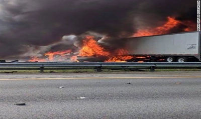 Nu este clar care a fost cauza accidentului, însă, atorităţile au precizat că cel puţin două vehicule cu remorcă au fost implicate şi peste 200 de litri de benzină a fost vărsată pe autostradă.