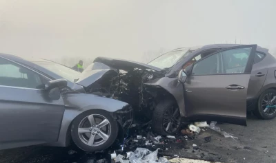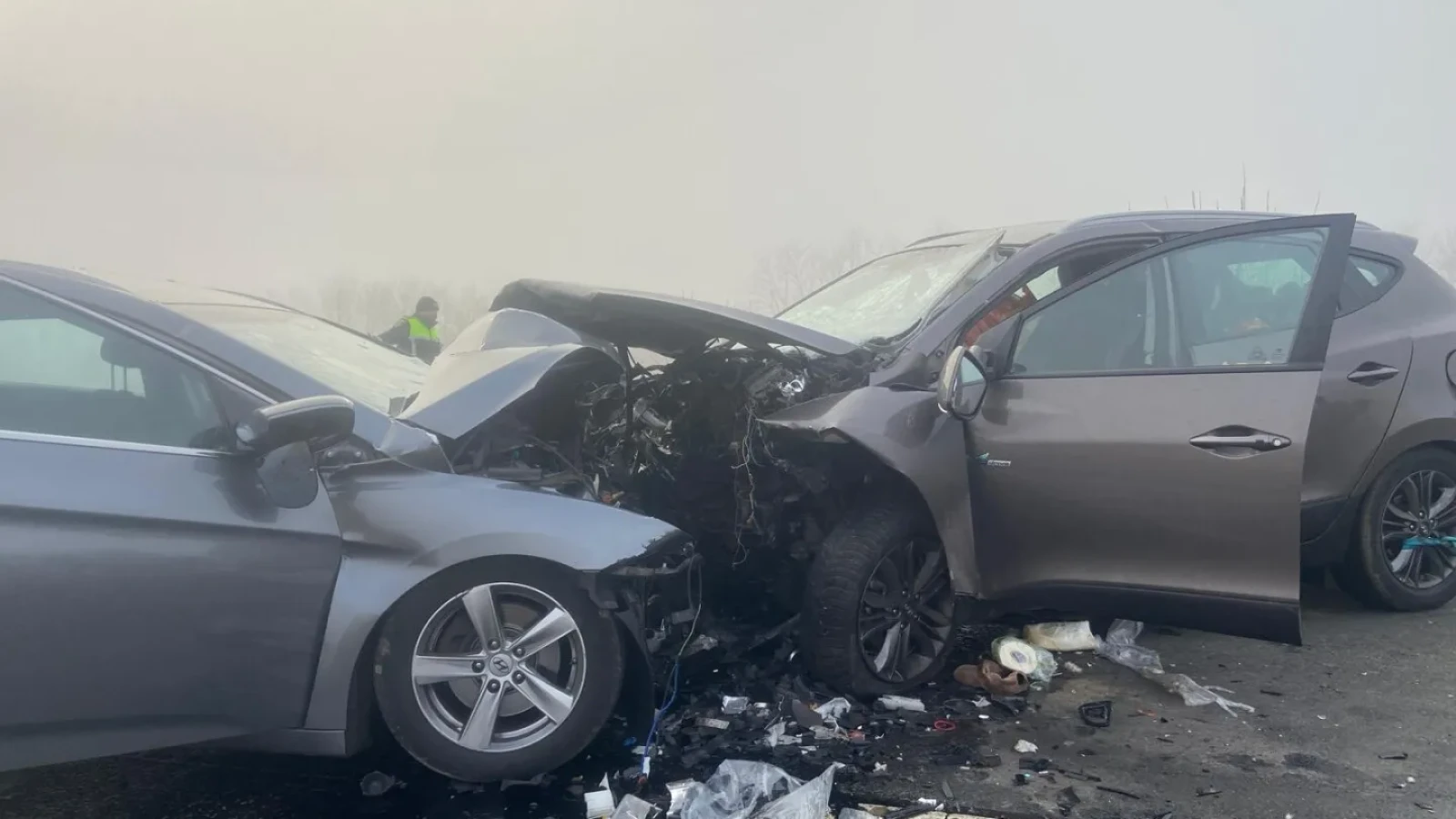 Două autoturisme s-au ciocnit frontal, fiecare fiind condus de câte o singură persoană.