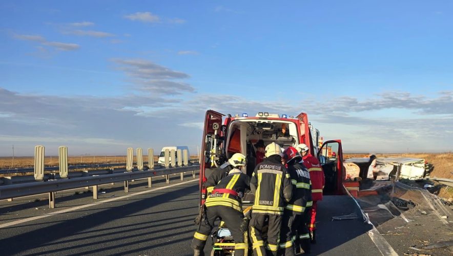 Potrivit ISU Arad, accidentul rutier a avut loc între un autotren și un microbuz, pe sensul de mers Arad - Nădlac - Km 570, pe A1.
