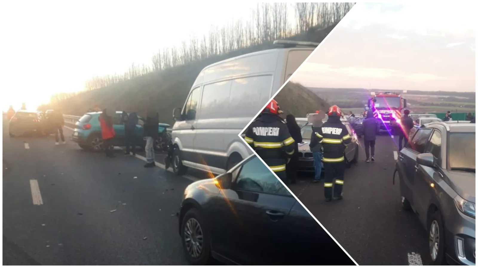„Accident rutier în care au fost implicate 10 autoturisme, în care se aflau circa 27 de persoane, pe DX 12, în zona localității Optași Măgura.