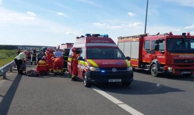 O persoană a murit, iar alte patru au fost rănite în urma unui accident în care au fost implicate un autoturism și un microbuz produs duminică dimineața pe nodul de ieșire de pe autostrada A1 în localitatea Orțișoara, județul Timiș, scrie Mediafax.