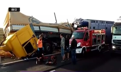 Trafic blocat în această dimineaţă pe Autostrada 1, pe sensul Timişoara-Arad. Două persoane au murit după ce două TIR-uri s-au ciocnit la kilometrul 526, în urmă cu două ore, anunță Digi24.