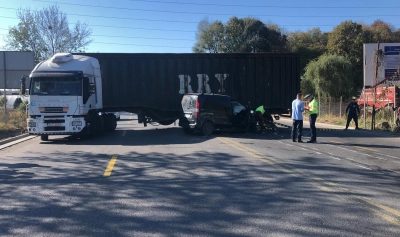 Potrivit polițiștilor, un tir a iesit dintr-o vulcanizare si ar fi incercat sa intoarca pe marcajul dublu continuu. Soferul autoturismul 7+1 nu a putut evita impactul.