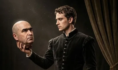Hamlet apare și el "dezvrăjit", coborât din mit în cotidian, „mahmur și descheiat la prăvălie”, refuzând craniul lui Yorick și visând la altă identitate. Dinescu sugerează astfel nu doar degradarea simbolică a personajelor, ci și riscul ca teatrul să fie forțat într-o formă de folclor birocratic, lipsit de profunzime și libertate.