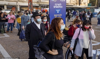 Aproape 5,7 din cei 9,3 de milioane de rezidenţi din Israel, respectiv peste 61%, au fost inoculaţi cu prima doză de vaccin, iar circa 5,2 milioane de persoane au fost vaccinate şi cu o a doua doză (circa 56%).