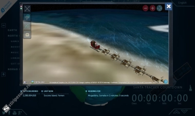 Cel mai important element este insa harta care va permite sa aflati in timp real unde este Mos Craciun si chiar sa urmariti sania in vreme ce se deplaseaza pe o simulare 3D a globului pamantesc. Impreuna cu cei mici, puteti sa-l supravegheati pe Mos si sa vedeti cum le aduce daruri copiilor din fiecare tara a lumii.