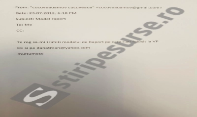 "Aceasta este copia unui email primit de mine de la doamna Kovesi. Dânsa a folosit tot timpul o adresă secretă numită [email protected]. Aşa a considerat că-şi poate ascunde identitatea şi că poate rezolva chestiuni personale secrete din interiorul Parchetului General şi DNA. Aşa a crezut dansa că-şi poate ascunde identitatea reală şi că în felul acesta se poate ascunde de consecinţele legale şi morale. Acest email mi-a fost transmis de către doamna Kovesi în 23.07.2012, solicitându-mi modelul de raport folosit în cazul plagiatului lui Ponta. Am decis să fac public acest email că urmare a negării de către doamna Kovesi a relaţiei reale cu mine, precum şi ca urmare a cererilor opiniei publice de a prezenţa dovezi. Am sperat că doamna Kovesi va avea demnitatea să recunoască şi să accepte modul în care a fost ajutată în promovare, precum şi protecţia pe care a primit-o în cazul acuzaţiilor de plagiat", spune Sebastian Ghiţă.