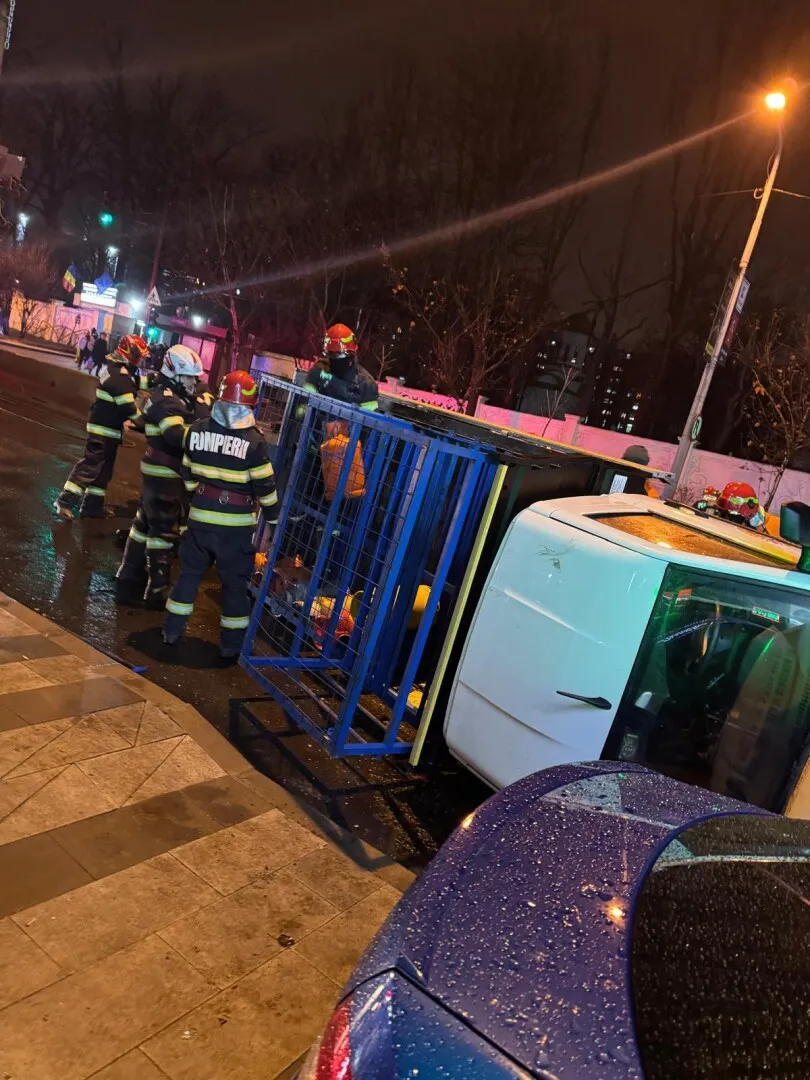 Pompierii ISUBIF anunță că, în urma cu scurt timp, s-a produs un accident rutier pe Șoseaua Fundeni, în urma căruia o autoutilitară, care avea peste 50 de butelii goale, s-a răsturnat pe o parte, fără ca acestea să ajungă pe carosabil.