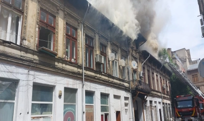 Un incendiu puternic a izbucnit, sâmbătă, la o clădire de 2 etaje din centrul istoric al Bucureștiului.