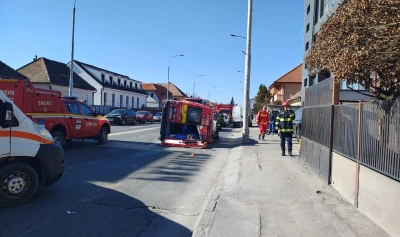 O ambulanță SMURD și o mașină au fost implicate într-un accident, sâmbătă, pe o stradă din Sibiu, fiind activat Planul Roșu de Intervenție. Ambulanța SMURD s-a răsturnat pe carosabil.