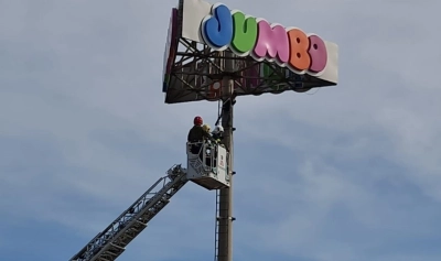 Potrivit presei locale, o femeie amenință că se aruncă de la înălțime în zona magazinului Jumbo, chiar de pe turnul de metal pe care se află sigla magazinului.