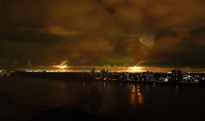 Incendiul a fost stins de pompieri în zori, însă în cursul dimineţii încă se vedeau flăcări uriaşe de la distanţă deasupra rafinăriei.