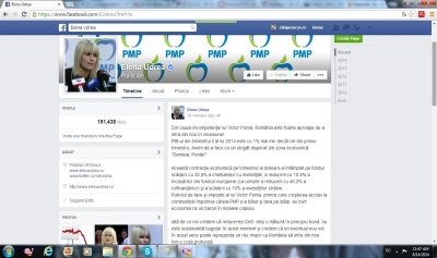 Elena Udrea avertizează că România riscă să intre în recesiune din cauza ”incompetenței lui Victor Ponta”, a scris liderul PMP pe o rețea de socializare.