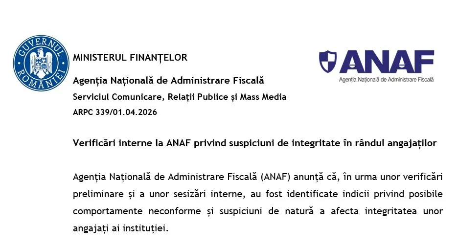 Potrivit comunicatului, ANAF a demarat „o serie de activități de monitorizare și analiză internă, în vederea clarificării situațiilor semnalate”, proces care vizează inclusiv corelarea situației din teren cu cea din evidențele informatice .