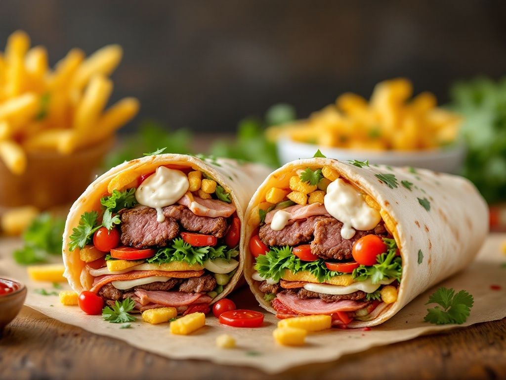 Șaorma "cu de toate" reprezintă quintesența adaptării acestui preparat oriental la gusturile românești. Deși rețeta originală din Orientul Mijlociu are o compoziție specifică, varianta românească a îmbrățișat o paletă mai largă de ingrediente, creând un profil gustativ unic și inconfundabil. În centrul acestei creații culinare se află carnea, de obicei pui sau vită, uneori chiar și berbecuț, gătită lent pe un rotisor vertical. Aceasta este învelită într-o lipie sau pită moale și caldă, care îmbrățișează o combinație generoasă de ingrediente: cartofi prăjiți crocanti, salată proaspătă de varză, roșii suculente, castraveți murați acrișori, ceapă tăiată fin și pătrunjel aromat. Sosurile joacă un rol crucial în definirea gustului unei șaorme autentice românești. Maioneza cremoasă, ketchup-ul dulce-acrișor, sosul de usturoi intens și sosul picant pentru cei mai curajoși se îmbină într-o simfonie de arome care face deliciul consumatorilor. Adăugarea cartofilor prăjiți, un ingredient neobișnuit pentru rețeta tradițională, oferă acea textură crocantă atât de apreciată de români. Această combinație unică de ingrediente și sosuri a transformat șaorma într-un preparat distinctiv românesc, adaptat perfect la preferințele locale și devenind rapid un favorit al iubitorilor de mâncare de stradă din întreaga țară.
