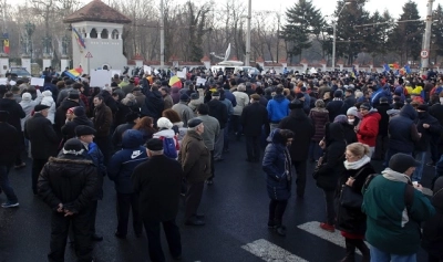 UPDATE 17 10 S-a închis circulaţia în zonă. Mulţimea de protestatari a crescut la circa 400 de oameni, conform România TV.