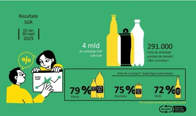 ”Datele aferente lunii noiembrie confirmă menţinerea unui nivel ridicat de performanţă. Peste 364 de milioane de ambalaje au fost colectate în luna noiembrie, rata lunară de returnare fiind de peste 86%. Cu o rată de colectare de 84% în perioada ianuarie-noiembrie 2025, Sistemul de Garanţie-Returnare continuă să sprijine tranziţia României către o economie circulară, mobilizând milioane de români să adopte un comportament responsabil faţă de mediu”, arată sursa citată.