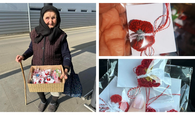 După mai bine de 60 de ani de muncă, Mămăița vinde mărțișoare cu un leu la LIDL! Bătrâna stă ore întregi în picioare pentrru a face rost de bani de mâncare și se teme să nu fie scoasă din parcarea supermarketului. Nu suportă ideea de a cerși, așa că face mărțișoarele cu mâinile ei!