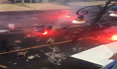 Fanii echipei din Frankfurt au incendiat o maşină a poliţiei şi au aruncat către forţele de ordine cu petarde şi fumigene. Poliţiştii au reacţionat folosind gaze lacrimogene.