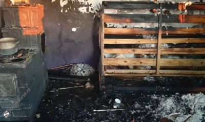 Camera afectată de incendiu a fost distrusă în totalitate.