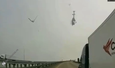 Imagini ce par desprinse din film s-au petrecut pe o autostradă aglomerată din Statele Unite ale Americii! O cameră de bord de pe un autovehicul a surprins moment în care un elicopter se prăbușește cu viteză chiar pe șosea, iar apoi explodează.