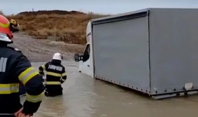 Pompierii au evacuat în siguranță șoferul și, cu ajutorul unui utilaj, va fi tractat vehiculul la mal.