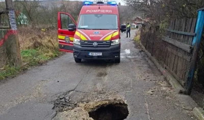 La faţa locului, salvatorii au găsit doi bărbaţi într-o groapă formată prin prăbuşirea asfaltului, adâncă de aproximativ 1 metru şi cu diametrul de circa 80 de centimetri.