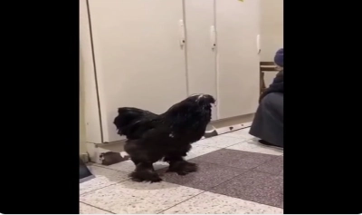 #Ukrainian granny who fled #Mariupol took her rooster with her.