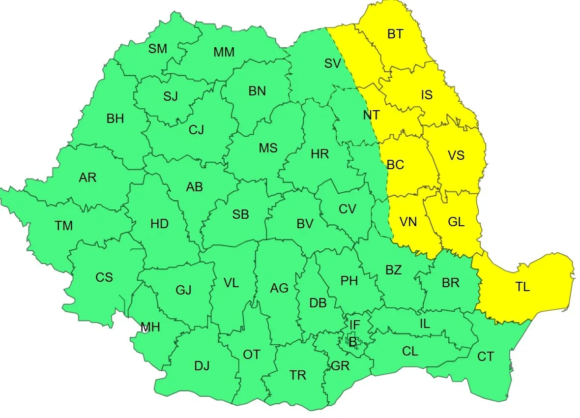 Potrivit explicațiilor ANM, codul galben indică fenomene meteorologice temporar periculoase pentru anumite activități, însă acestea sunt considerate relativ obișnuite pentru perioada sau zona în care apar.
