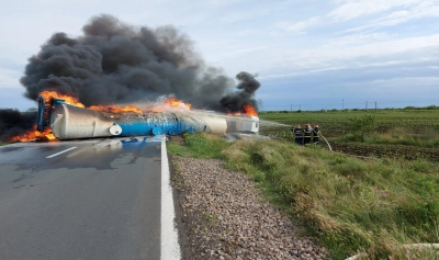 În accident au fost implicate două autoturisme şi o cisternă, victima fiind şoferul unuia dintre autoturisme, care ar fi adormit la volan.