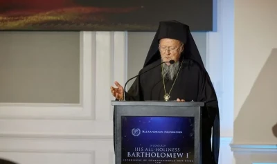 Patriarhia Ecumenică, instituţie transnaţională şi pur spirituală, îşi trage puterea din forţa iubirii, nu din iubirea de putere. Suntem neclintiţi în credinţa noastră că adevărata pace nu poate fi atinsă prin mijloace lumeşti, ci prin Evanghelia Domnului nostru Iisus Hristos”, a afirmat Bartolomeu I.