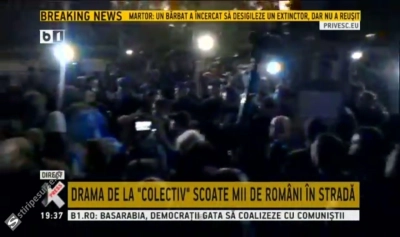 Oamenii scandează împotriva guvernului, împotriva premierului Victor Ponta și cer demisia acestuia: ”Jos guvernul”, ”Colectiv, colectiv”, ”Iesi afara javră ordinara”.