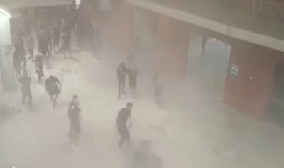 Cu 40 de minute înaintea startului, mai mult suporteri au coborât din tribune și au încercat să ajungă în „câmp liber”, unde s-au putea duela nestingheriți. Forțele de ordine au intervenit în forță. Pe imaginile din interiorul arenei se observă cum jandarmii împart lovituri de bastoane în toate direcțiile, în tentativa de a liniști spiritele.