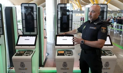 Noul sistem de intrare/ieșire al UE, care implică date biometrice și aparate precum cele prezentate aici, la Aeroportul Adolfo Suarez Madrid-Barajas din Spania, va fi lansat începând cu 12 octombrie.