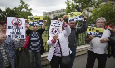 În acelaşi timp, în apropiere manifestează alţi aproximativ 50 de oameni împotriva ”statului paralel”. Jandarmeria a montat garduri, iar circulaţia pe bulevardul Naţiunile Unite a fost blocată.