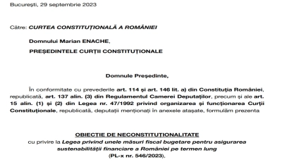USR și Forța Dreptei au sesizat Curtea Constituțională pe legea privind unele măsuri fiscale, legea pe care Marcel Ciolacu a angajat răspunderea Guvernului. Principalul punct al sesizării vizează tocmai procedura angajării răspunderii, autorii fiind de părere că o astfel de lege nu poate fi trecută prin angajare.