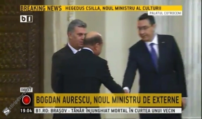 Pentru prima dată după mult timp, președintele Traian Băsescu a făcut un gest normal față de premierul Victor Ponta. L-a salutat și cei doi și-au strâns mâna.