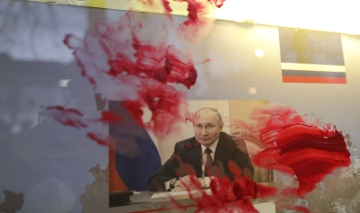 Un incident a avut loc, sâmbătă seară, în timpul manifestaţiei din faţa Ambasadei Rusiei la Bucureşti, preşedintele asociaţiei "Corupţia ucide", Florin Bădiţă-Nistor, aruncând cu vopsea roşie pe un portret al preşedintelui rus, Vladimir Putin, expus pe panoul informativ de pe gardul misiunii diplomatice.