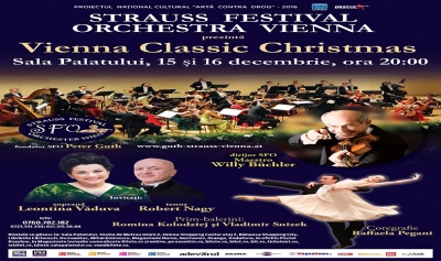 Spectacolul Vienna Classic Christmas, sustinut de Strauss Festival Orchestra Vienna sub bagheta maestrului Willy Büchler, cu participarea corpului de balet Pegani si a solistilor Leontina Vaduva si Robert Nagy, vor inchide anul cultural national Arta Contra Drog 2016 , desfasurat de CIADO Romania si Asociatia Culturala Dracula.
