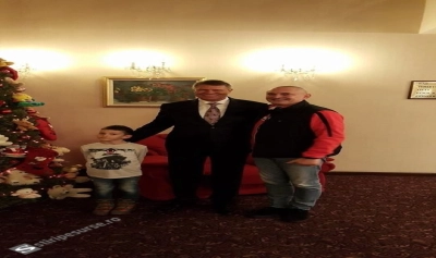 Președintele Klaus Iohannis, aflat la Sibiu, a făcut fotografii cu câțiva dintre locuitorii orașului, sub un brad împodobit. Totul s-a întâmplat în holul unui hotel din oraș.