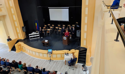 Primarul municipiului Buzău, Constantin Toma, viceprimarul Ionuţ Apostu şi directorul Colegiului Naţional ”Mihai Eminescu” din Buzău, Camelia Voicu, au tăiat panglica şi au reinaugurat, marţi, în mod oficial, clădirea renovată din temelii, în care elevii liceului au revenit din 25 martie.