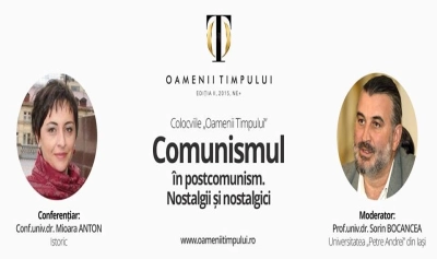Miercuri, 18 noiembrie 2015, ora 17:00, la Muzeul Unirii din Iași va avea loc cel al treilea eveniment din seria Colocviilor OAMENII TIMPULUI. Conferința „Comunismul în postcomunism” va fi susținută de istoricul Mioara Anton și moderată de prof. Univ. dr. Sorin Bocancea, editor coordonator al paginilor „Polis” din Revista TIMPUL.