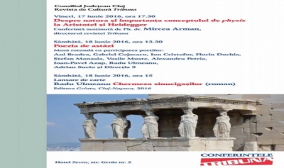 Managerul revistei, filosoful și juristul Mircea Arman ne-a declarat: ”Devenite deja tradiționale, "Conferințele Tribuna" care vor avea loc la Cluj-Napoca pe parcursul zilelor de 17-19 iunie, constituie adevărate sărbatori ale spiritului. "Despre natura și importanța conceptului de physis la Aristotel și Heidegger" , susținută de subsemnatul și "Poezia de astăzi", o masă rotundă sunt punctele de convergență ale acestor manifestări. Totodată, vor avea loc lansări de carte, dintre care amintesc: Ani Bradea, "Poeme din zid", vineri, la Librăria Diverta, începând cu ora 15.00 și sâmbătă lansarea romanului "Chermeza sinucigașilor", de Radu Ulmeanu, de la ora 15.00, în sala se conferințe a Hotelului Seven. Dintre participanți voi aminti doar câțiva, printre care Andrei Marga, Grigore Zanc, Alexandru Petria, Adrian Suciu si Directia 9, Vasile Muste, Victor Cubleșan, Ion Cristofor, Gabriel Cojocaru, Ioan Pavel Azap si altii, pe care nu îi mai enumăr aici. Intrarea este liberă, publicul amator de cultură fiind invitat să participe.”