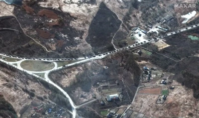 Imaginile din satelit realizate de compania Maxar prezintă un convoi militar rusesc la nord de Kiev, care se întinde pe aproximativ 64 km. Convoiul este substanţial mai mare faţă de raportările iniţiale făcute în cursul zilei de luni.