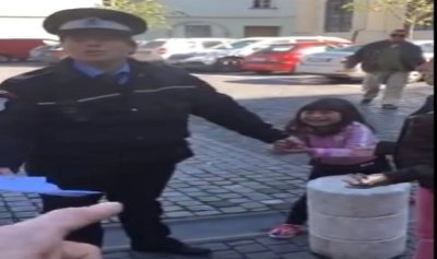 Scandal mare în centrul Sibiului. O agentă o Poliției Locale a fost surprinsă când trăgea de mâna fiicei unei cerșetoare. Fata, care nu are mai mult de șapte ani, se zbate și plânge. Bărbatul care a surprins imaginile îi spune femeii să lase copilul în pace și să nu îl mai bruscheze, pentru că are de vorbit cu mama ei.